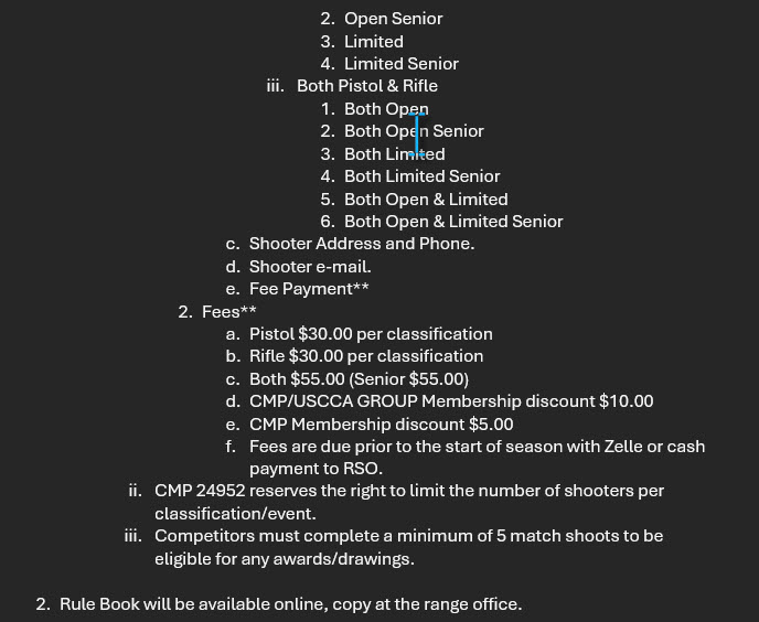 RIMFIRE LEAGUE Seasons: Spring / Summer